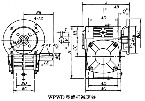 WPWD型蜗轮蜗杆减速机是在WD减速机的基础上发展起来的,蜗杆采用45#钢经热处理加工制造,蜗轮用锡青铜铸制而成,耐磨性能良好,尤其在承载能力上 加明显,蜗轮蜗杆减速机主要适用于塑料、冶金、饮料、矿山、起重运输、化工建筑等各种机械设备的减速传动。 主要型号:WPWD40、WPWD50、WPWD60、WPWD70、WPWD80、WPWD100、WPWD120、WPWD135、WPWD155、WPWD175、WPWD200、WPWD250。型蜗轮蜗杆减速器主要尺寸: